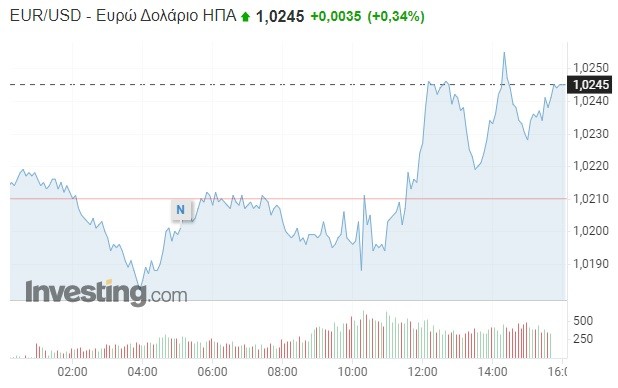 Έτσι, σήμερα, στις διεθνείς αγορές συναλλάγματος, το ευρώ σημειώνει οριακή άνοδο κατά 0,29% και καθορίζεται στο 1,024 δολάριο, περιορίζοντας στο -13,4% την ετήσια «χασούρα» έναντι του αμερικανικού νομίσματος.