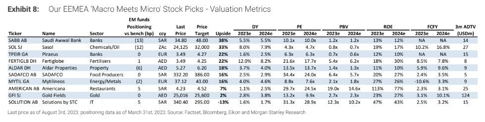 Η Morgan Stanley επικαιροποιεί τη λίστα μετοχών «Macro Meets Micro» στην περιοχή της EEMEA και οι αλλαγές αντικατοπτρίζουν την αισιοδοξία της για τις προτεινόμενες ευρωπαϊκές μετοχές της αναδυόμενης Ευρώπης και τη χώρα μας, προσθέτοντας Τράπεζα Πειραιώς και Mytilineos.