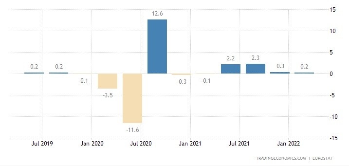 Την ίδια ώρα, η εγγύτητα στο στρατιωτικό μέτωπο Ρωσίας – Ουκρανίας ενισχύει τον κίνδυνο επιβράδυνσης της ευρωπαϊκής ανάπτυξης. Στο α’ τρίμηνο του 2022, άλλωστε, το ΑΕΠ της Ευρωζώνης αυξήθηκε μόλις κατά 0,2% (σε τριμηνιαίο επίπεδο), ενώ η διαμάχη με τη Ρωσία σχετικά με τον τρόπο πληρωμής του φυσικού αερίου έρχεται να εντείνει τις προκλήσεις για το β’ τρίμηνο.