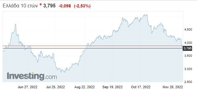 Δεν είναι τυχαίο ότι η απόδοση του 10ετούς ομολόγου της χώρας μας υποχωρεί κατά σχεδόν 10 μονάδες βάσης και περιορίζεται στο 3,795%, το χαμηλότερο επίπεδο από τις 23 Αυγούστου. Τα spreads, παράλληλα (δηλαδή η απόκλιση σε σχέση με τη γερμανική απόδοση), καθορίζονται στις 204 μονάδες βάσης.