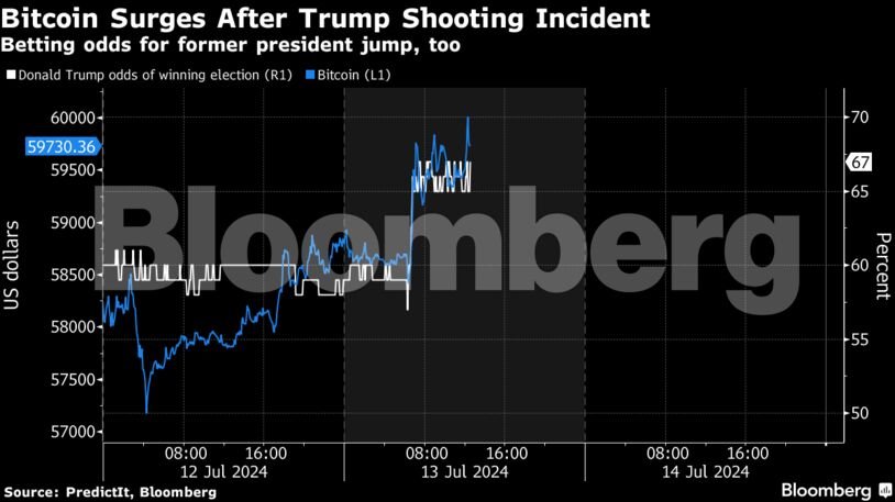 Το Bitcoin ενισχύθηκε πάνω από τα 60.000 δολάρια, αφού η προκλητική απάντηση του Ντόναλντ Τραμπ σε μια απόπειρα δολοφονίας υποκίνησε την εικασία ότι οι πιθανότητες να κερδίσει τις προεδρικές εκλογές έχουν ανέβει.