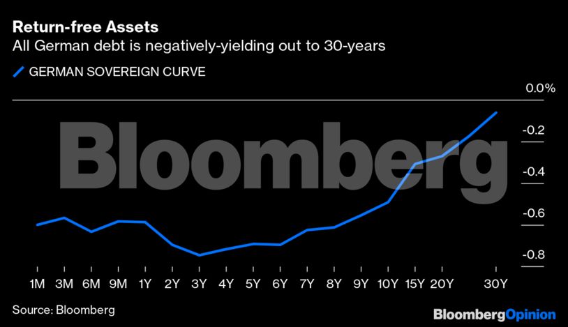 Τα γερμανικά ομόλογα σε κάθε διάρκεια έχουν αρνητικές αποδόσεις – αυτό σημαίνει πως το Βερολίνο σήμερα θεωρητικά μπορεί να δανείζεται επ’ἀμοιβή για οποιαδήποτε διάρκεια επιλέξει.