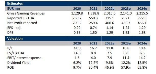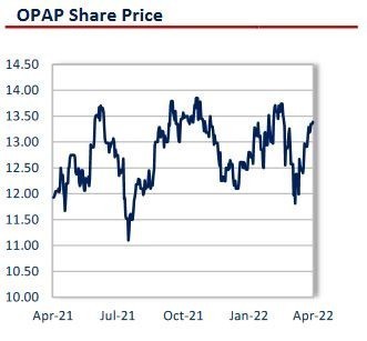 Η χρηματιστηριακή αναβαθμίζει τις προβλέψεις της για τα αποτελέσματα του ΟΠAΠ το 2022 και κατά 1-2%.