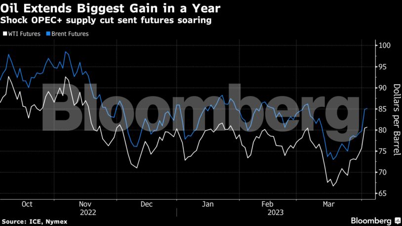 Το πετρέλαιο σημείωσε τη μεγαλύτερη άνοδο του τελευταίου έτους μετά την απροσδόκητη και σημαντική μείωση της παραγωγής του ΟΠΕΚ+, η οποία θα περιορίσει την παγκόσμια αγορά.