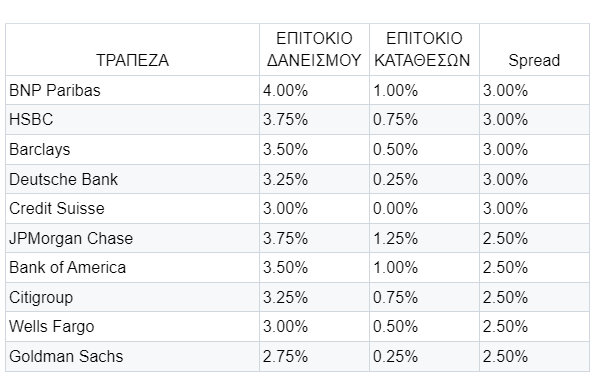 Στις ΗΠΑ, τα επιτόκια έχουν αυξηθεί επίσης, αλλά το περιθώριο μεταξύ των επιτοκίων δανεισμού και καταθέσεων δεν διευρύνθηκε τόσο πολύ όσο στην Ευρώπη. Αυτό συμβαίνει επειδή οι αμερικανικές τράπεζες είναι πιο ανταγωνιστικές και πρέπει να προσφέρουν υψηλότερα επιτόκια καταθέσεων για να προσελκύσουν πελάτες.
