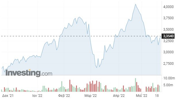 Ας σημειωθεί ότι η μετοχή της Εθνικής Τράπεζας παραμένει στο +12,5% από τις αρχές του 2022, παρά την κάμψη κατά 16,4% στο τελευταίο 30ήμερο. Σήμερα δε, ενισχύεται στο +1,5% και τα 3,35 ευρώ.