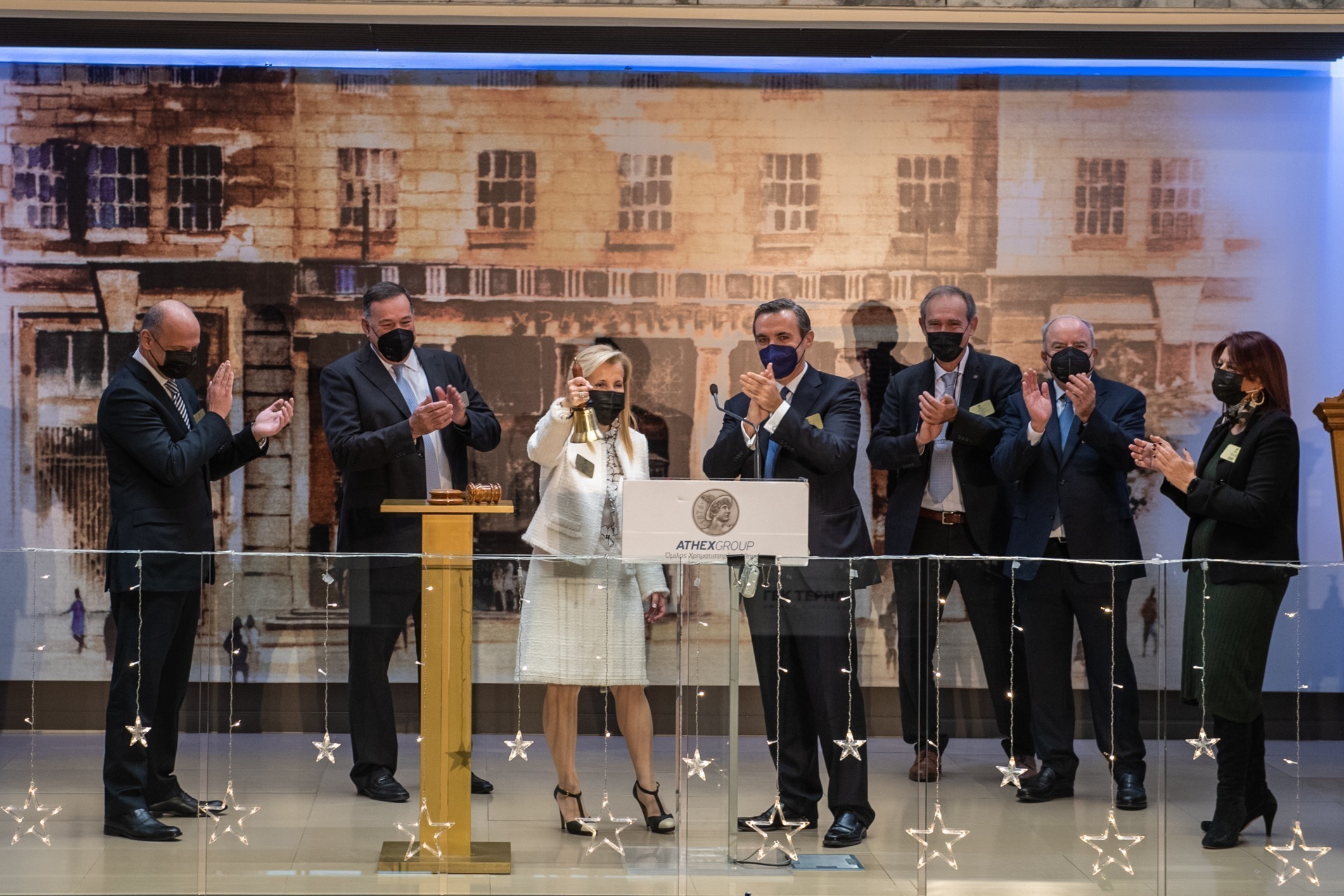 Ο Πρόεδρος και Διευθύνων Σύμβουλος του Ομίλου ΓΕΚ ΤΕΡΝΑ κ. Γιώργος Περιστέρης κήρυξε την έναρξη της σημερινής συνεδρίασης του Χ.Α. χτυπώντας το παραδοσιακό καμπανάκι.