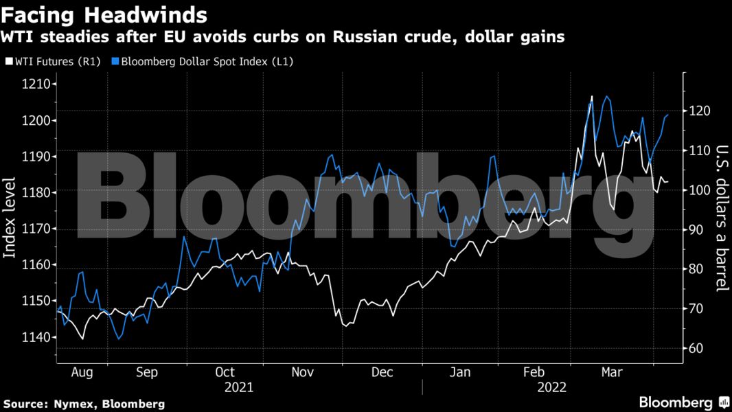 Σε αυτό το κλίμα, η τιμή του αμερικανικού αργού πετρελαίου (Crude WTI) έφτασε κοντά στα 102 δολάρια το βαρέλι αφού νωρίτερα σημείωσε πτώση έως και 1,6%. Ενώ η ΕΕ θα συνεχίσει με πρόσθετες κυρώσεις κατά της Μόσχας για τον πόλεμο στην Ουκρανία, συμπεριλαμβανομένης την απαγόρευση εισαγωγής άνθρακα από τη Ρωσία, το αργό δεν θα τεθεί ακόμη στο στόχαστρο.