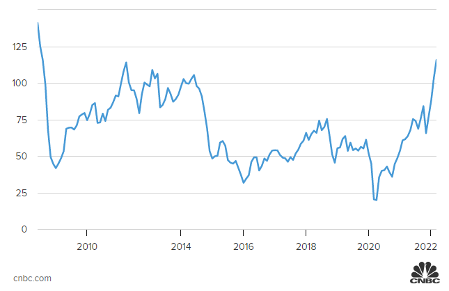 Συγκεκριμένα, η τιμή του βαρελιού πλησίασε νωρίτερα τα 140 δολάρια, παίρνοντας ώθηση από την επικίνδυνη κλιμάκωση του πολέμου στην Ουκρανία και τη σχεδόν πλήρη αναστολή των εξαγωγών ρωσικού πετρελαίου, καθώς και το ενδεχόμενο να απαγορευτεί η εισαγωγή του ρωσικού πετρελαίου και φυσικού αερίου από τις ΗΠΑ, όπως ανέφερε ο Αμερικανός ΥΠΕΞ, Αντονι Μπλίνκεν και η πρόεδρος της Βουλής των Αντιπροσώπων, Νάνσι Πελόζι.