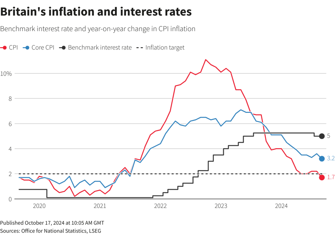 Η Τράπεζα της Αγγλίας μείωσε τα επιτόκια από 5,25% σε 5% τον Αύγουστο και οι αγορές έχουν αυξήσει τα στοιχήματα για περαιτέρω χαλάρωση μετά τα επικαιροποιημένα στοιχεία.