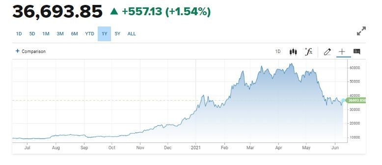 Αυτή την ώρα, η τιμή του βρίσκεται στα 36.693,85 δολάρια.