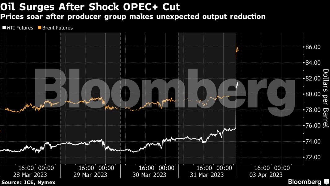Η τιμή του «μαύρου χρυσού» εκτινάχθηκε κατά την έναρξη της εβδομάδας αφού ο ΟΠΕΚ+ ανακοίνωσε αιφνιδίως μείωση στην παραγωγή αργού που απειλούν με περαιτέρω περιορισμό της αγοράς πετρελαίου, προκαλώντας νέο πληθωριστικό σοκ στην παγκόσμια οικονομία.