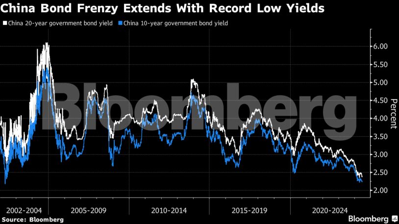 Η απόδοση του 10ετούς ομολόγου της Κίνας υποχώρησε σε χαμηλό άνω των δύο δεκαετιών, καθώς οι επενδυτές συνέχισαν να συρρέουν στα χρεόγραφα εν μέσω παρατεταμένων ανησυχιών για την εγχώρια οικονομία και προσδοκιών για περαιτέρω μέτρα τόνωσης της οικονομίας.