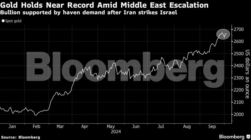 Το πολύτιμο μέταλλο διαπραγματευόταν γύρω στα 2.660 δολάρια ανά ουγγιά, αφού έκλεισε 1,1% υψηλότερα στην προηγούμενη συνεδρίαση, όταν το Ιράν εκτόξευσε περίπου 200 βαλλιστικούς πυραύλους κατά του Ισραήλ. Ο πρόεδρος Μπενιαμίν Νετανιάχου χαρακτήρισε την κίνηση «μεγάλο λάθος» και υποσχέθηκε να κάνει το Ιράν να «πληρώσει γι’ αυτό». Οι ΗΠΑ, στο μεταξύ, προειδοποίησαν ήδη το Ιράν εναντίον των «συνεπειών» της επίθεσης που εξαπέλυσε εναντίον του Ισραήλ, προσθέτοντας πως διεξάγει συνομιλίες με την κυβέρνηση Νετανιάχου για ανταπόδοση.