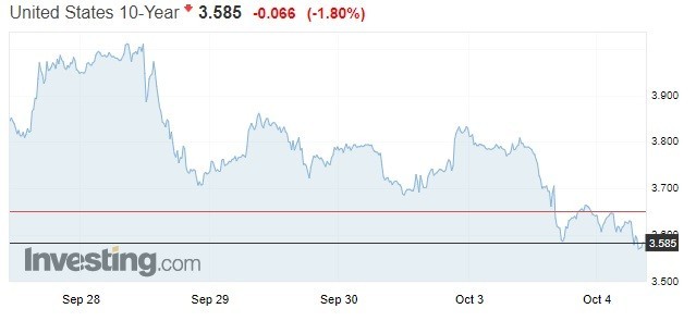 Αντίστοιχη μείωση εμφανίζουν και οι αμερικανικοί τίτλοι, με την απόδοση του 10ετούς ομολόγου να καθορίζεται στο 3,585% (από 4% την προηγούμενη εβδομάδα). Άλλωστε, ολοένα και περισσότεροι αναλυτές θεωρούν ότι το πληθωριστικό φαινόμενο στις ΗΠΑ βαίνει προς κορύφωση, κάτι που σημαίνει ότι σταδιακά θα αρχίσει η αποκλιμάκωσή του.