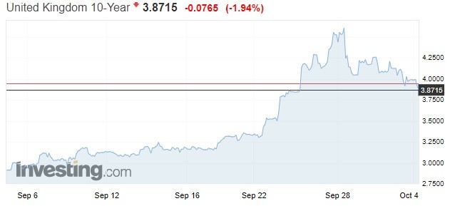 Στο Ηνωμένο Βασίλειο, μετά την απόσυρση του φορολογικού νομοσχεδίου, το οποίο πυροδότησε μια έντονη αναταραχή στα βρετανικά assets, η απόδοση του 10ετούς ομολόγου σημειώνει πτώση στο 3,89% (από 4,6% την προηγούμενη εβδομάδα).