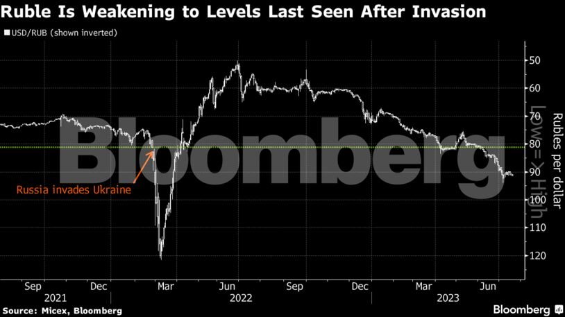 Η ένοπλη ανταρσία των δυνάμεων της Wagner εναντίον του υπουργείου Άμυνας προκάλεσε περαιτέρω εκροές χρημάτων από τη Ρωσία, επιδεινώνοντας τα προβλήματα της οικονομίας. Γι’ αυτόν τον λόγο, από τις συνολικές φετινές απώλειες του 18% στο ρούβλι, τουλάχιστον το 1/3 επήλθε μετά την αποτυχημένη πορεία της Wagner προς τη Μόσχα.