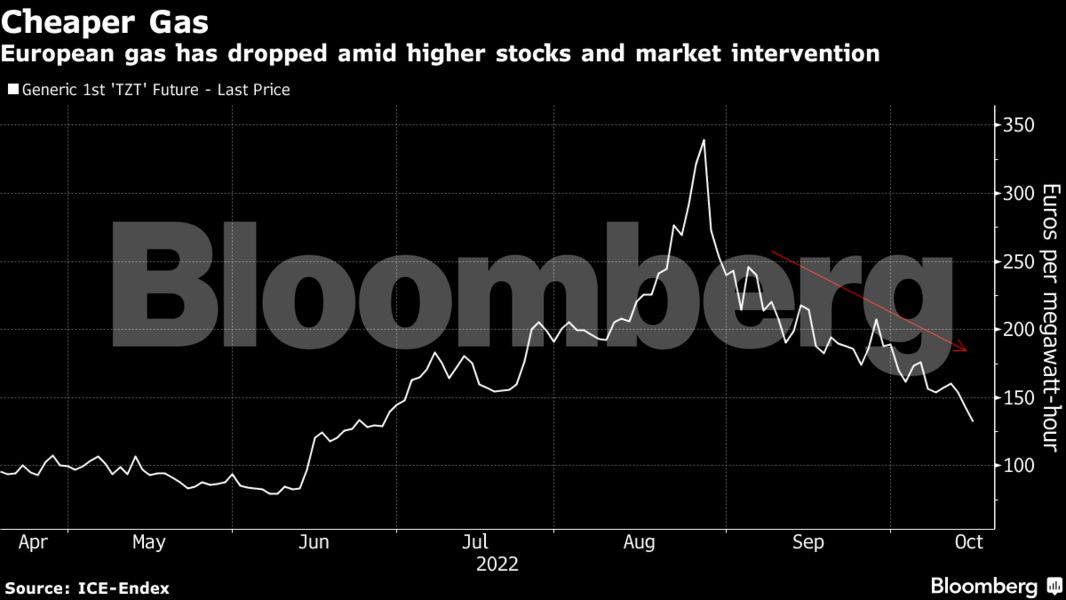 Η αγορά ήταν ευαίσθητη στις παρεμβάσεις της ΕΕ για τον περιορισμό των επιπτώσεων της κρίσης που τροφοδότησε τον πληθωρισμό και οδήγησε τις οικονομίες στο χείλος της ύφεσης, σημειώνει το Bloomberg. Ο εκτελεστικός βραχίονας της ΕΕ πρόκειται να προτείνει μία δέσμη μέτρων την Τρίτη προκειμένου να μετριάσει τον αντίκτυπο από τις διακοπές των ρωσικών ροών. Το σχέδιο θα συζητηθεί από τους ηγέτες της ΕΕ στη σύνοδο κορυφής στις 20-21 Οκτωβρίου στις Βρυξέλλες.