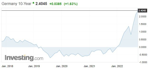 Στο ίδιο μήκος κύματος κινείται και το κόστος δανεισμού των υπόλοιπων χωρών της Ευρωζώνης, με το -πάντα ευμετάβλητο- ιταλικό 10ετές να καθορίζεται στο 4,771% (υψηλό 9 ετών). Από εκεί και πέρα, το γερμανικό διαμορφώνεται στο 2,408% (υψηλό 11 ετών), το γαλλικό στο 2,972% (υψηλό 10 ετών) και το ισπανικό στο 3,550% (υψηλό 8 ετών).