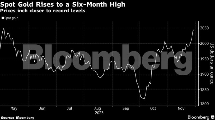 Ο χρυσός έχει κάνει ράλι με άνοδο 12% από τις αρχές Οκτωβρίου, που αρχικά τροφοδοτήθηκε από την αύξηση των τοποθετήσεων σε επενδύσεις – καταφύγια, στον απόηχο της σύγκρουσης Ισραήλ-Χαμάς. Αυτή την εβδομάδα, οι επενδυτές θα παρακολουθούν στενά τα οικονομικά στοιχεία των ΗΠΑ, συμπεριλαμβανομένου του υφιστάμενου πληθωρισμού, για περαιτέρω ενδείξεις σχετικά με την κατεύθυνση των επιτοκίων.