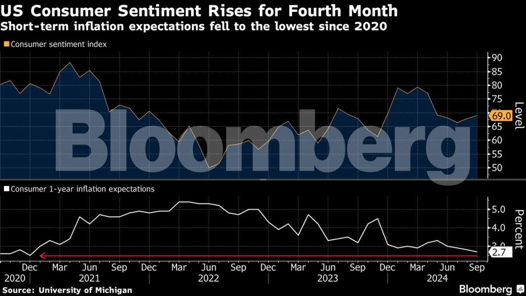 Ο δείκτης κλίματος αυξήθηκε σε 69 μονάδες από 67,9 τον Αύγουστο, όπως έδειξαν τα προκαταρκτικά στοιχεία του Πανεπιστημίου του Μίσιγκαν την Παρασκευή. Η μέση εκτίμηση σε έρευνα του Bloomberg μεταξύ οικονομολόγων έκανε λόγο για μέτρηση 68,5.