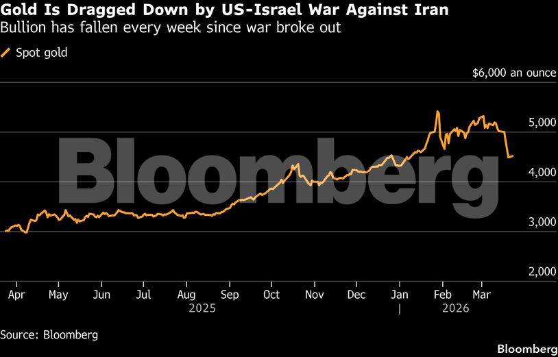Στις τρεις εβδομάδες από την έναρξη του πολέμου στις 28 Φεβρουαρίου, η πτώση του χρυσού ενισχύθηκε και από αναγκαστικές ρευστοποιήσεις, καθώς οι επενδυτές προσπαθούν να καλύψουν απώλειες σε άλλα τμήματα των χαρτοφυλακίων τους. Αξίζει να σημειωθεί ότι το μέταλλο είχε κλείσει το προηγούμενο έτος στα 4.319,37 δολάρια ανά ουγγιά.