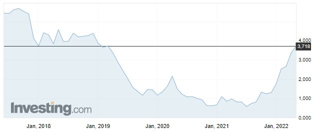 Μέσα σ’ αυτό το πλαίσιο, η απόδοση του 10ετούς ομολόγου της Ελλάδας, το οποίο θεωρείται και το πλέον ευάλωτο της Ευρωζώνης, εκτινάσσεται στο 3,718% και σκαρφαλώνει στο υψηλότερο επίπεδο από τον Μάρτιο του 2019, αντανακλώντας τις ανησυχίες των επενδυτών.