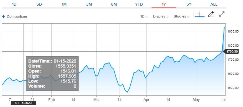 Στην τιμή-ρεκόρ των 1.933,92 δολαρίων ανά ουγγιά αναρριχήθηκε ο χρυσός σήμερα το πρωί, επιβεβαιώνοντας την ιδιότητά του ως ασφαλές καταφύγιο εν μέσω της πανδημίας του κορωνοϊού, αλλά και της αυξανόμενης έντασης στις σχέσεις ΗΠΑ – Κίνας, ενώ στην άνοδο της αξίας του συμβάλλει και η υποχώρηση της συναλλαγματικής ισοτιμίας του αμερικανικού δολαρίου.