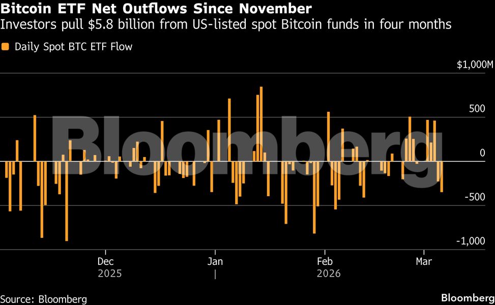 Η επιφυλακτικότητα ήταν εμφανής και στους επενδυτές, οι οποίοι απέσυραν κεφάλαια από διαπραγματεύσιμα αμοιβαία κεφάλαια (ETFs), με τις ροές να γίνονται ξανά αρνητικές στα τέλη της περασμένης εβδομάδας. Τα spot ETFs του Bitcoin έχουν καταγράψει καθαρές εκροές σχεδόν 6 δισεκατομμυρίων δολαρίων από τον Νοέμβριο, σύμφωνα με στοιχεία που συγκέντρωσε το Bloomberg.