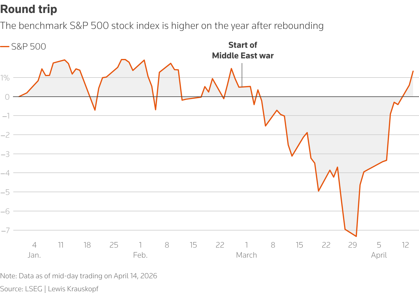 Η αμερικανική αγορά έχει πλέον ξεπεράσει ελαφρώς τα επίπεδα στα οποία βρισκόταν όταν ξέσπασε ο πόλεμος με το Ιράν, πριν από πάνω από έξι εβδομάδες, κάτι που, σύμφωνα με τους επενδυτές, αντανακλά την πεποίθηση ότι η σύγκρουση δε θα διαρκέσει για πολύ.