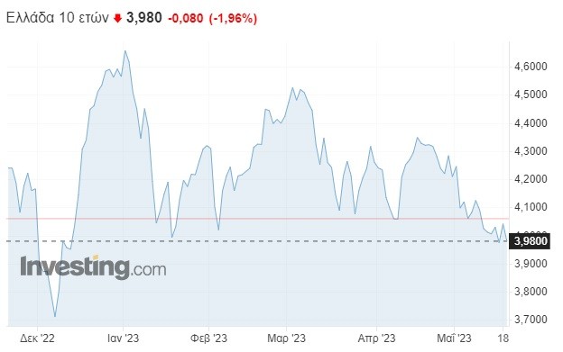 Είναι ενδεικτικό ότι το κόστος δανεισμού στη 10ετία ανέρχεται στο 3,98%, παραμένοντας στο χαμηλότερο επίπεδο από τον Δεκέμβριο του 2022. Από την πλευρά τους, τα spreads, δηλαδή η απόκλιση από τη γερμανική απόδοση, καθορίζονται μόλις στις 150 μονάδες βάσης.