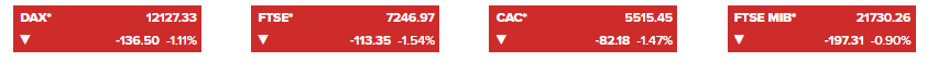 Ο πανευρωπαϊκός Stoxx 600 υποχωρεί κατά 1,27% στις 383,06 μονάδες. Ο κλάδος των πρώτων υλών υποχωρεί κατά 1,6% σημειώνοντας τις μεγαλύτερες απώλειες, ενώ όλοι οι μεγάλοι δείκτες βρίσκονται σε αρνητικό πρόσημο. Στον αντίποδα οι μετοχές του κλάδου ταξιδίων που σημειώνει άνοδο 0,7%.
