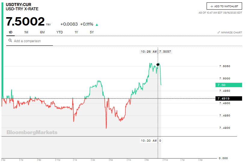 Σε νέο χαμηλό υποχωρεί αυτή την ώρα η ισοτιμία του τουρκικού νομίαμστος, καθώς οι προσπάθειες της κεντρικής τράπεζας να υποστηρίξει την ισοτιμία του νομίσματος να μην επιδεινωθεί πέρα του 7,5 δεν πέτυχαν.