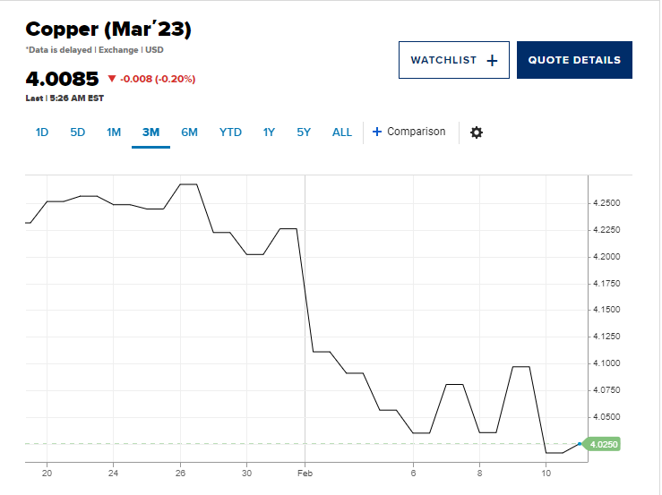 Τα προθεσμιακά συμβόλαια παράδοσης Μαρτίου ανήλθαν στα 4,1055 δολ/λίβρα την Πέμπτη, σημειώνοντας πτώση τις τελευταίες βδομάδες μετά το ράλι του Ιανουαρίου.