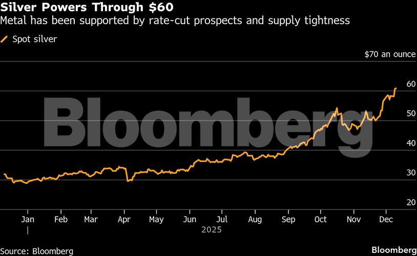 Η αξία του αργύρου έχει υπερδιπλασιαστεί φέτος, ξεπερνώντας την άνοδο του χρυσού κατά 60%. Η άνοδός του έχει επιταχυνθεί από την ιστορική μείωση της προσφοράς τον Οκτώβριο. Αν και αυτή η κρίση έχει μετριαστεί, καθώς όλο και περισσότερο μέταλλο εισρέει στα θησαυροφυλάκια του Λονδίνου, τα επιτόκια δανεισμού παραμένουν υψηλά — μια ένδειξη της συνεχιζόμενης στενότητας. Άλλες αγορές αντιμετωπίζουν τώρα περιορισμούς στην προσφορά, με τα κινεζικά αποθέματα να βρίσκονται στα χαμηλότερα επίπεδα της δεκαετίας.