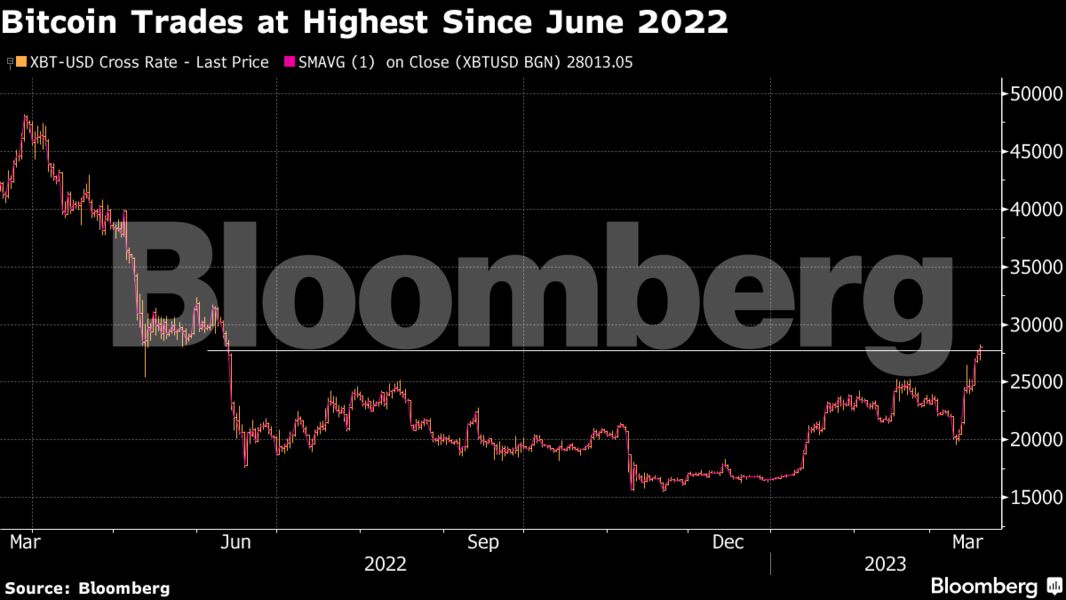 Η αναταραχή στον τραπεζικό τομέα, τα καλύτερα από τα αναμενόμενα στοιχεία για τον πληθωρισμό ΗΠΑ και οι νέες ελπίδες για μια πιο χαλαρή νομισματική πολιτική από την Fed έχουν οδηγήσει το Bitcoin σε επίπεδα που να δει εδώ και εννέα μήνες.