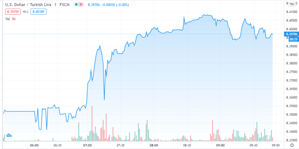 Η απόφαση αυτή ελήφθη παρά το γεγονός ότι η τουρκική λίρα από τις 5 Αυγούστου κατρακυλούσε με όλο και μεγαλύτερη ταχύτητα – και η αύξηση των επιτοκίων από την κεντρική τράπεζα αποτελεί το κλασσικό φρένο για να σταματήσει το κατήφορο ενός νομίσματος.