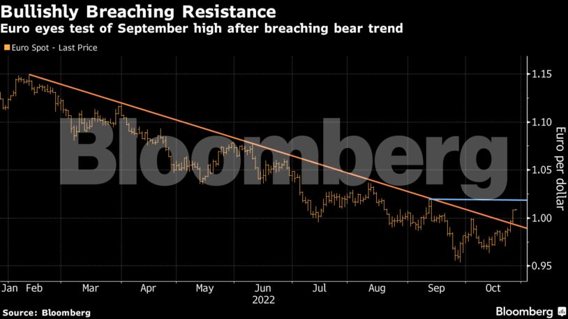 «Η άνοδος της ισοτιμίας ευρώ/δολαρίου δοκιμάζει τον κινητό μέσο όρο 100 ημερών για πρώτη φορά από τον Φεβρουάριο», αναφέρει ο Αλβιν Ταν, στρατηγικός αναλυτής συναλλάγματος στην RBC Capital Markets. «Μια καθαρή διάσπαση των υψηλών του Σεπτεμβρίου λίγο κάτω από το $1,02 θα έφερνε στο επίκεντρο το τεχνικό επίπεδο του $1,035».