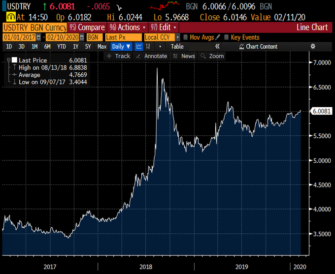 Το κρίσιμο ψυχολογικό όριο του 6 (το οποίο οι κρατικές τράπεζες κατ’ἐντολή της Άγκυρας το υπερασπίζονταν για αρκετό καιρό) το διέσπασε την Παρασκευή, προκαλώντας συναλλαγματική αιμοραγγία στο τουρκικό καθεστώς, το οποίο από την προηγούμενη εβδομάδα πουλά εναγωνίως δολάρια (που όμως χρειάζεται) για να την στηρίξει.