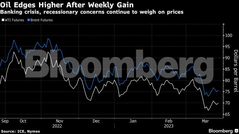 Το πετρέλαιο διεύρυνε τα εβδομαδιαία κέρδη του, καθώς οι επενδυτές προετοιμάζονται για περαιτέρω μεταβλητότητα εν μέσω των συνεπειών της τραπεζικής κρίσης που πλήττει τις αγορές.