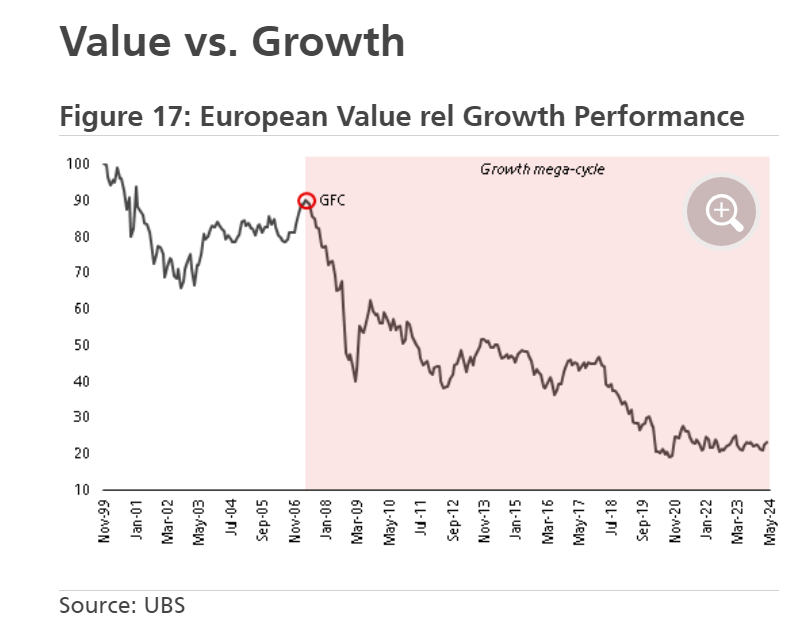 Μετοχές αξίας έναντι ανάπτυξης: Πιστεύουμε ότι υπάρχουν επιχειρήματα και για τις δύο κατηγορίες μετοχών. Με τη μείωση των επιτοκίων, οι μετοχές αξίας μπορεί να επωφεληθούν από την ελκυστικότητα των μερισματικών τους αποδόσεων σε σχέση με τα μέσα σταθερού εισοδήματος. Οι μετοχές ανάπτυξης θα επωφεληθούν από τα χαμηλότερα μακροπρόθεσμα επιτόκια, ωστόσο το όφελος μπορεί να είναι λιγότερο έντονο, δεδομένου ότι το μέγεθος της αναμενόμενης μείωσης των μακροπρόθεσμων επιτοκίων είναι μικρότερο.