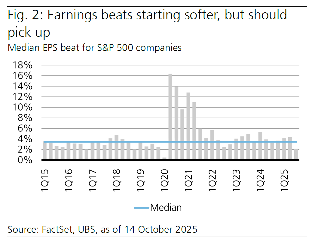 Η UBS υπογραμμίζει ότι, παρά την κόπωση που παρατηρήθηκε στο τέλος του καλοκαιριού, η εταιρική Αμερική παραμένει σε ισχυρή θέση. Οι επιχειρήσεις επωφελούνται από τη βελτίωση των περιθωρίων κέρδους, τις μειωμένες πιέσεις από το κόστος εργασίας και τη σταδιακή αποκλιμάκωση των επιτοκίων δανεισμού. Παράλληλα, η πτώση του δολαρίου κατά το τελευταίο τρίμηνο λειτουργεί ευνοϊκά για τις πολυεθνικές εταιρείες, αυξάνοντας τα μεταφρασμένα έσοδα από το εξωτερικό.