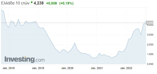 Σήμερα, εξάλλου, το κόστος δανεισμού της χώρας υπερβαίνει σταθερά το 4,2% και σκαρφαλώνει στο υψηλότερο σημείο από τα μέσα Ιουνίου, όταν και επιβεβαιώθηκε η απόφαση της κεντρικής τράπεζας για τερματισμό των μέτρων χαλάρωσης και έναρξης των μέτρων σύσφιγξης.