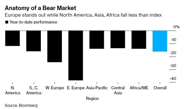 Σε bear market («αρκούδες») έχει διολισθήσει η αγορά των κρατικών ομολόγων, καθώς η αύξηση των επιτοκίων από τις κεντρικές τράπεζες έχει εντείνει τις ανησυχίες για τον κίνδυνο ύφεσης στην παγκόσμια οικονομία, επιδεινώνοντας αισθητά το επενδυτικό κλίμα.