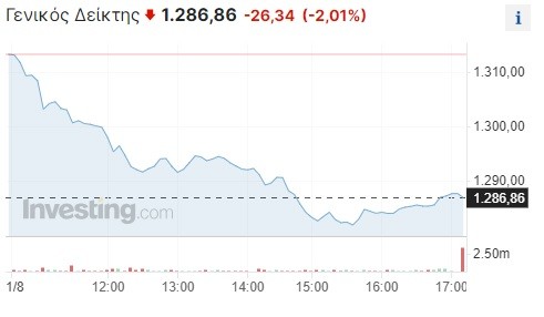 Κάτω από τις 1.300 μονάδες, για πρώτη φορά από τις 10 Ιουλίου, βρέθηκε το Χρηματιστήριο Αθηνών, με τις απώλειες στο ταμπλό να αποδεικνύονται οι ισχυρότερες από τις 26 Ιουνίου, καθώς οι επενδυτές επιδόθηκαν σε μαζικές διορθωτικές κινήσεις.