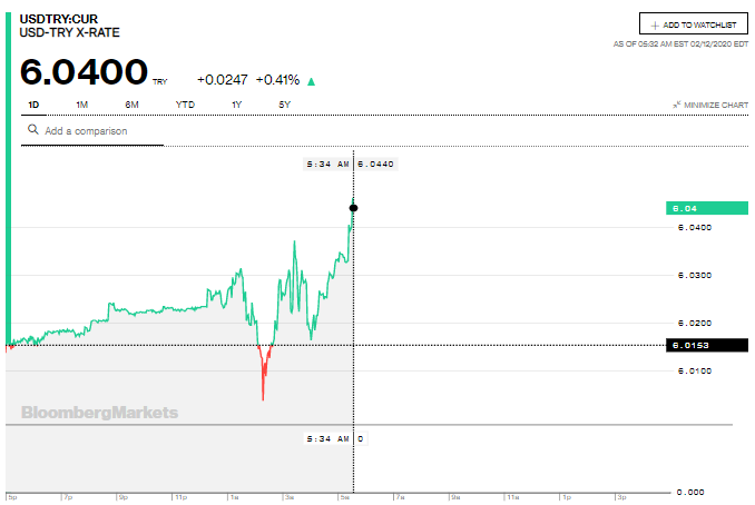 - Η αγορά οδηγει σταθερά την τουρκική λίρα χαμηλότερα (υψηλότερα στο διάγραμμα, το οποίο δείχνει τη σχέση ισοτιμίας. Όσο πιο ψηλά από το 6 τόσο πιο χαμηλά η αξία της λίρας).