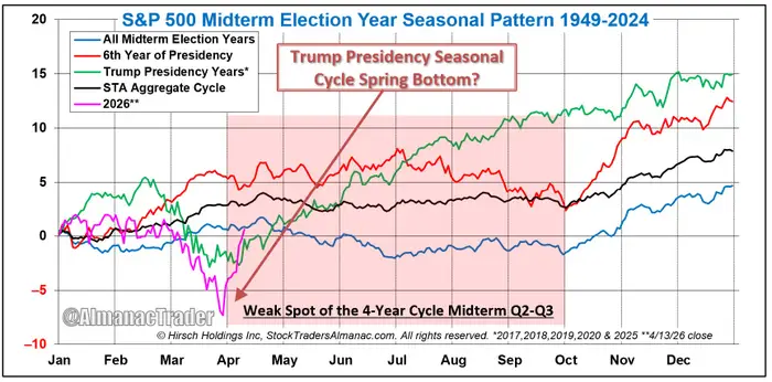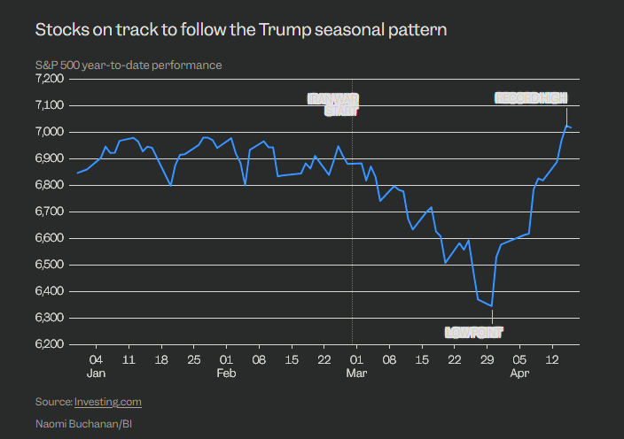 «Ένα μοτίβο ξεχωρίζει: κατά τη διάρκεια των ετών της προεδρίας Τραμπ, ο S&P 500 είχε την τάση να σχηματίζει ένα εαρινό κατώτατο σημείο στα τέλη Μαρτίου έως τις αρχές Απριλίου, πριν σημειώσει σημαντικές ανόδους προς το τέλος του έτους», τόνισε.