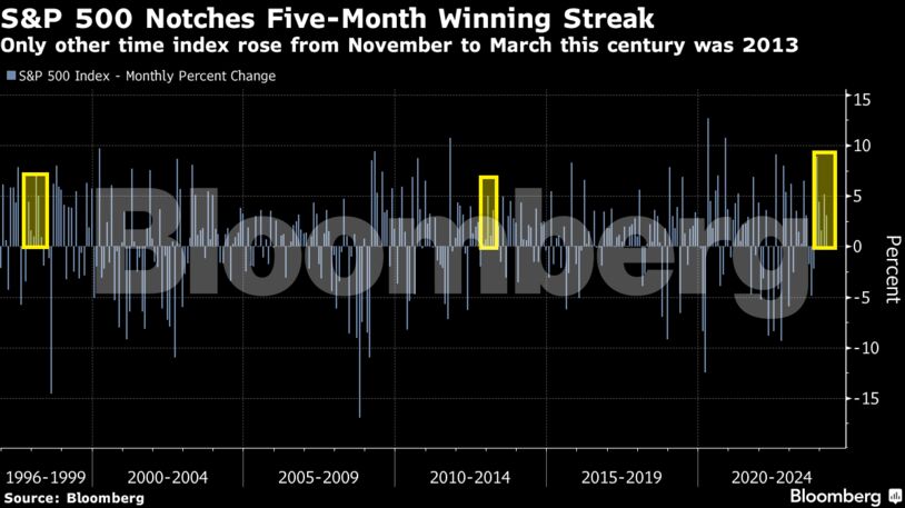 Η υποχώρηση του προτιμώμενου από τη Fed δείκτη του υφιστάμενου πληθωρισμού τον περασμένο μήνα, σε συνδυασμό με την ανάκαμψη των δαπανών των νοικοκυριών, υποδηλώνει ότι οι προσδοκίες για άνοδο που ώθησαν τις μετοχές σε ρεκόρ φέτος παραμένουν άθικτες. Ο λεγόμενος βασικός δείκτης τιμών προσωπικών καταναλωτικών δαπανών, ο οποίος αφαιρεί τις ευμετάβλητες συνιστώσες των τροφίμων και της ενέργειας, αυξήθηκε κατά 0,3% από τον προηγούμενο μήνα, επιβραδύνοντας από την ισχυρή μέτρηση του Ιανουαρίου.