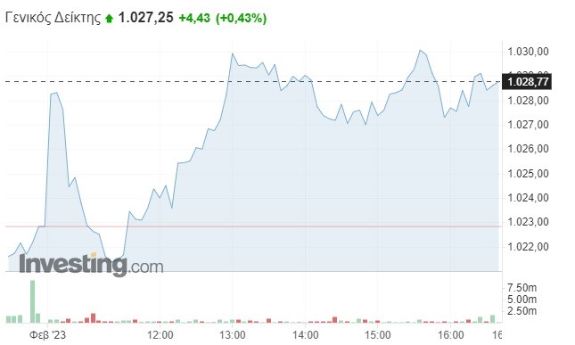 Κοντά στη ζώνη των 1.030 μονάδων επέστρεψε το Χρηματιστήριο Αθηνών, με τους επενδυτές να αφήνουν πίσω την αρχική μεταβλητότητα και να επιδίδονται σε νέες αγοραστικές κινήσεις, χάρη στα αισιόδοξα στοιχεία για τον πληθωρισμό του Ιανουαρίου. Την ίδια στιγμή, βέβαια, δεν απουσίασε και η επιφυλακτικότητα, δεδομένων των επικείμενων αποφάσεων των κεντρικών τραπεζών για το ύψος των επιτοκίων (σήμερα η Fed, αύριο η ΕΚΤ).