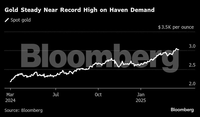 Η τιμή spot του χρυσού παρέμενε σταθερή στα 3.022,15 δολάρια ανά ουγγιά στις 8:26 π.μ. ώρα Σιγκαπούρης, αφού είχε σημειώσει άνοδο 1,3% την περασμένη εβδομάδα. Ο δείκτης Bloomberg Dollar Spot υποχώρησε κατά 0,1%, μετά από άνοδο 0,8% στις τρεις προηγούμενες συνεδριάσεις. Οι τιμές του αργύρου, της πλατίνας και του παλλαδίου κινήθηκαν επίσης ανοδικά.